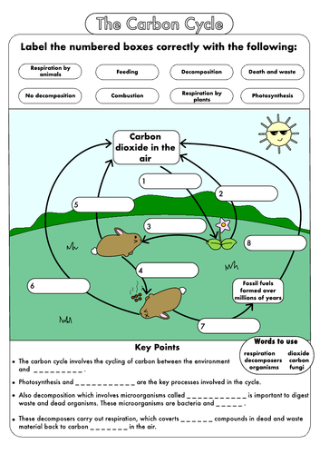 PDF The carbon cycle - ECMWF The carbon cycle Interaction between all the Earth system components • Carbon reservoirs and their interactions with the atmosphere (focusing on CO 2primarily). • Can carbon cycle –climate feedbacks improve atmospheric predictive skill? Vegetation, radiative transfer, atmospheric chemistry • Atmospheric CO Carbon Cycle Worksheet Activity | Earth and Space Science Our Carbon Cycle Worksheet includes a diagram of the carbon cycle, along with five questions to test students' comprehension. The diagram of the carbon cycle provided illustrates the process that carbon goes through. This includes respiration, photosynthesis, combustion, death, fossil fuels, dissolving and evaporation.