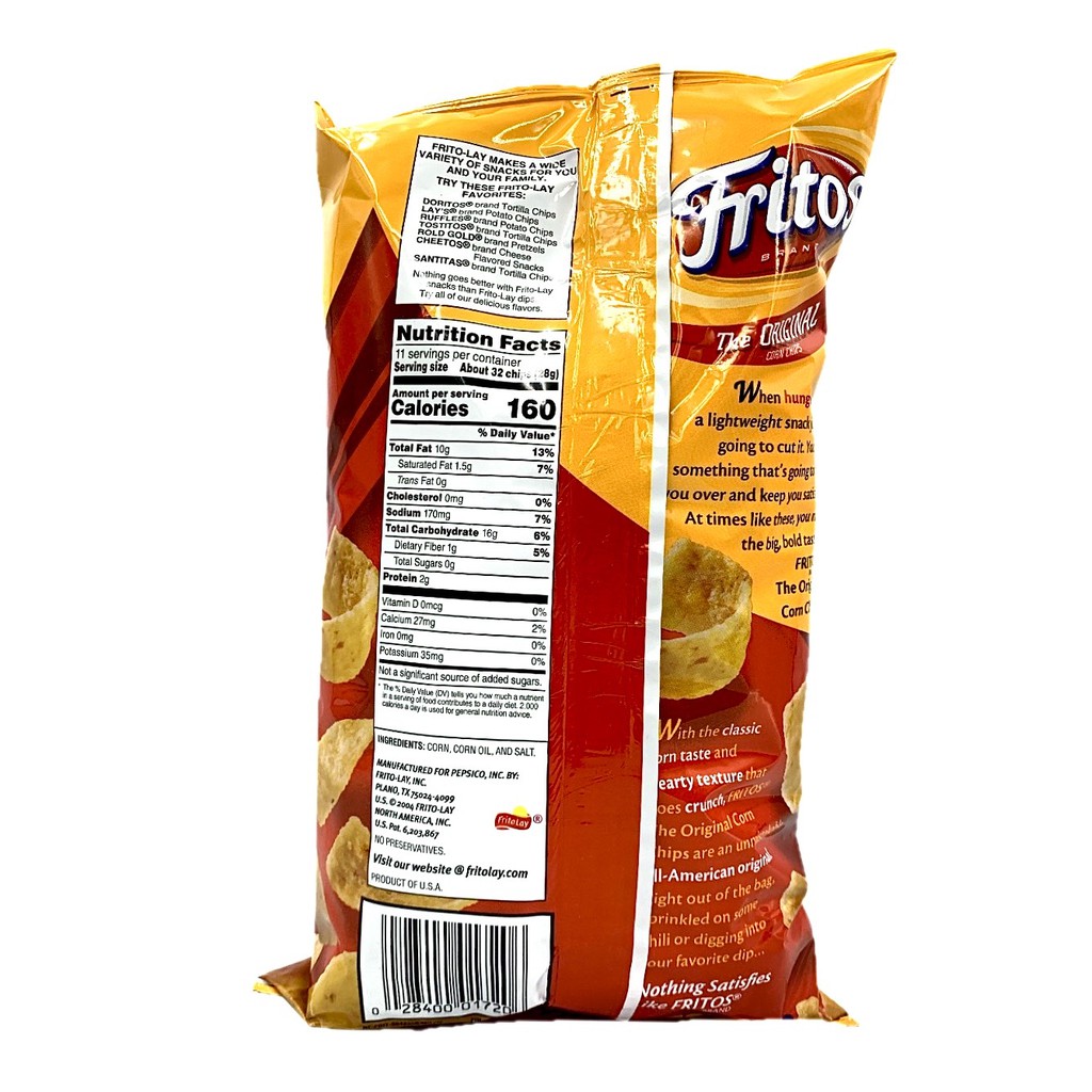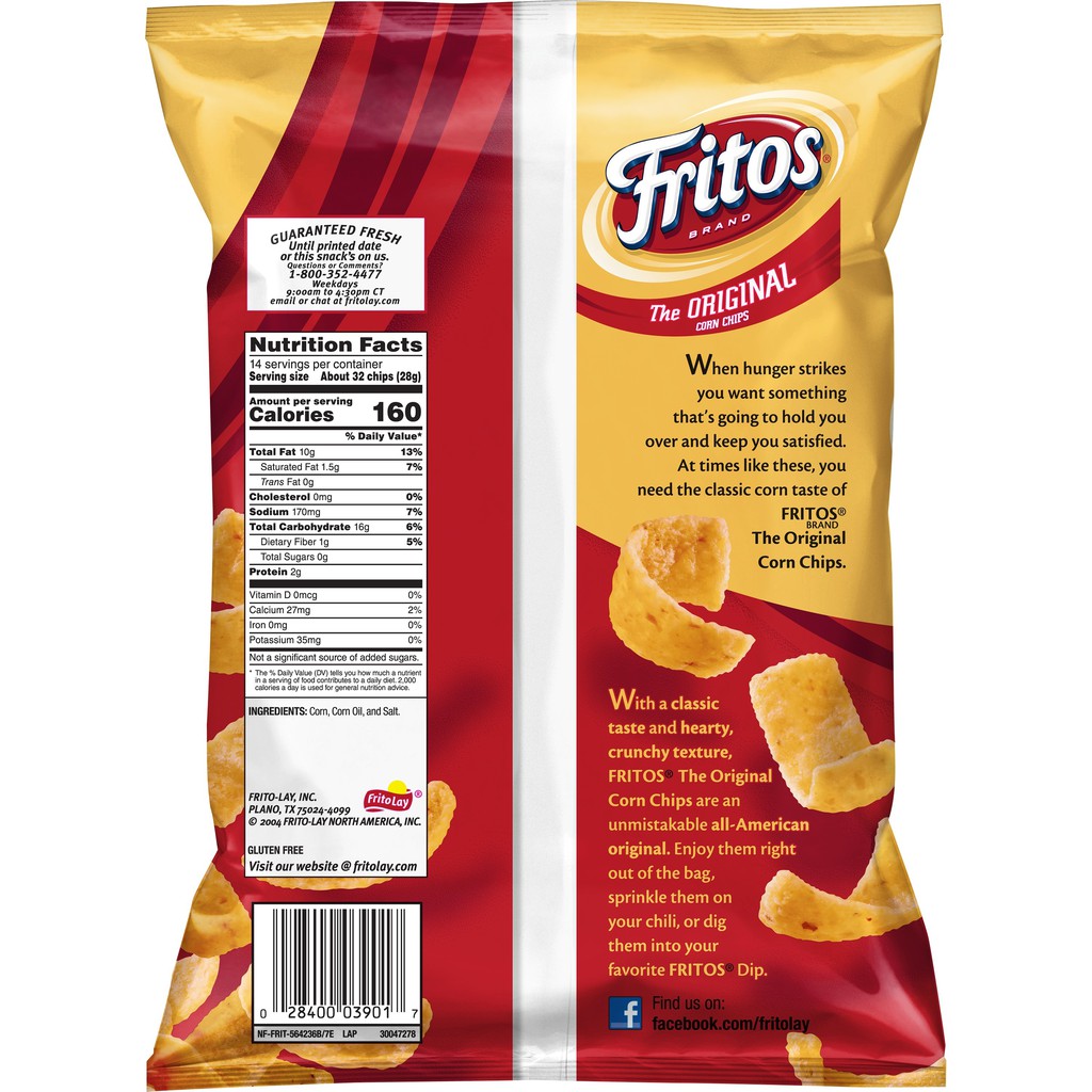 › products › fritos-original-corn-chipsFritos ® Original Corn Chips We update this information regularly, however, we recommend you check the label on a specific product for the most current and accurate nutritional information. If you need assistance, please contact Consumer Relations (opens a new window) toll-free at 1-800-352-4477 Monday through Friday between 9:00 a.m. and 4:30 p.m. Central Standard Time.