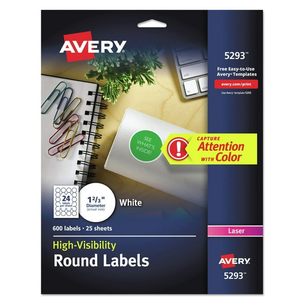 Avery High-Visibility Laser Specialty Labels, 1 2/3" Dia., White, 600 ... Get Avery High-Visibility Laser Specialty Labels, 1 2/3" Dia., White, 600 Labels Per Pack (5293) fast and with free shipping on qualifying orders at Staples. ... These Avery high-visibility laser printer labels work with Avery Design & Print templates, making it easy to create one-of-a-kind messages to help brand your business. ...