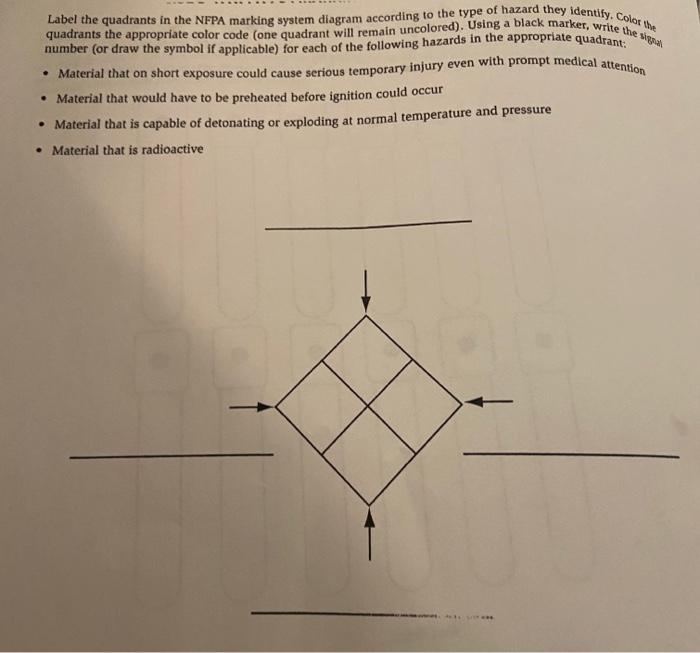 OSHA and ANSI Safety Colors | Graphic Products OSHA and Safety Colors. OSHA outlines two broad requirements for safety colors in its standard for safety color codes (29 CFR 1910.144). The standard maintains that red and yellow must be used for marking physical hazards. Red must be used for fire-related hazards, as well as emergency switches, bars, and buttons on hazardous machines. NFPA 704 Chemical Storage Color Codes - ThoughtCo The scale runs from 0 (no hazard) to 4 (severe hazard). Special White Codes The white area may contain symbols to indicate special hazards: OX - This indicates an oxidizer that allows chemical to burn in the absence of air. SA - This indicates a simply asphyxiant gas. The code is limited to nitrogen, xenon, helium, argon, neon, and krypton.