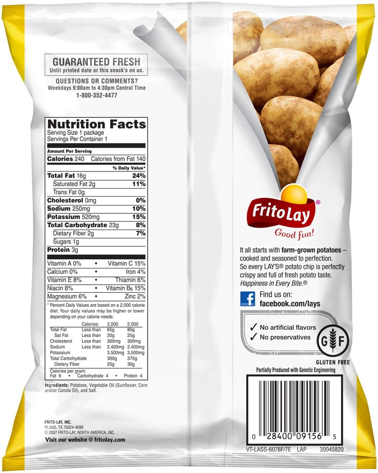 Lays original nutrition label