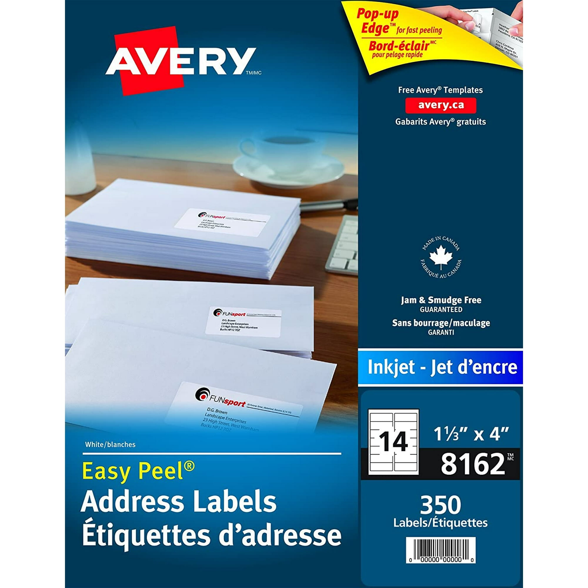 Avery Easy Peel Inkjet Address Labels, 1 1/3" x 4", White, 350 Labels ... These 1 1/3 x 4-inch Avery address labels are made with a patented Easy Peel design, so removing and applying them is fast and simple. Address labels are ideal for mailings, messages, invitations, and announcements Individual labels measure 1 1/3"H x 4"W White color for an attractive look Features a permanent adhesive backing for a secure bond