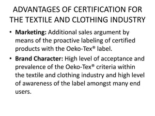 Oeko-Tex - Wikipedia Oeko-Tex is a registered trade mark, representing the product labels and company certifications issued and other services provided by the International Association for Research and Testing in the Field of Textile and Leather Ecology (which also calls itself Oeko-Tex for short).