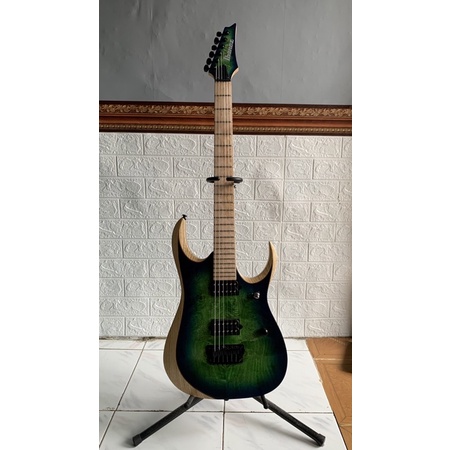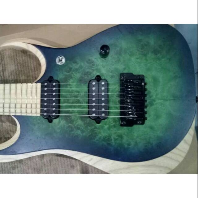 Ibanez Iron Label RGD Series RGDIX7MPB 7-String Electric Guitar (26.5 ... About this item . Surreal Blue Burst finish 3pc Maple/ Bubinga "Nitro Wizard-7" neck (26.5") Poplar Burl top/ Ash body Birdseye Maple fretboard Jumbo frets DiMarzio Fusion Edge 7 neck pickup DiMarzio Fusion Edge 7 bridge pickup Gibraltar Standard II-7 bridge Gotoh locking tuners Black hardware Factory tuning: 1:D, 2:A, 3:F, 4:C, 5:G, 6:D, 7:A Case sold separately