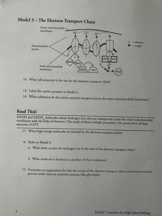 Solved Model 3 - The Electron Transport Chain Outer | Chegg.com Label the carrier proteins in Model 3. 16. What substance do the carrier proteins transport across the innet mitochondrial Question: Model 3 - The Electron Transport Chain Outer mitochondrial membrane H Н. H incon oxygen Mitochondrial matrix AD GUADINAD Inner mitochondrial membrane ADH FAD (H.0 14.