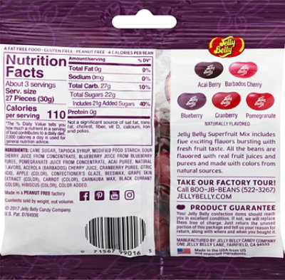 Jelly belly nutrition label