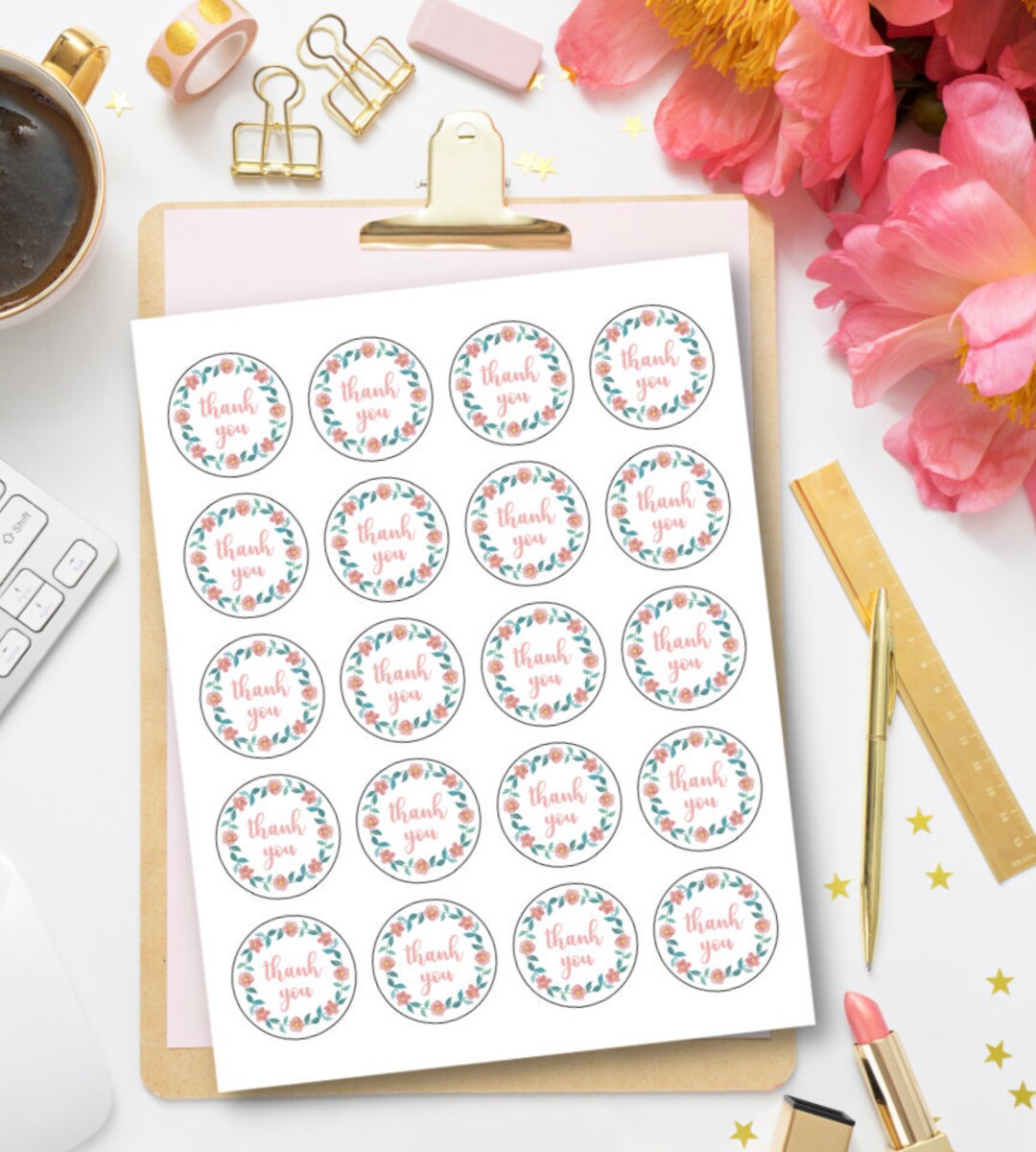 Download–Self Care Package Stickers (for Avery Presta 94502) Download and print on Avery Presta 94502 label paper. 2.5″ diameter circle stickers get your client excited to open her package!