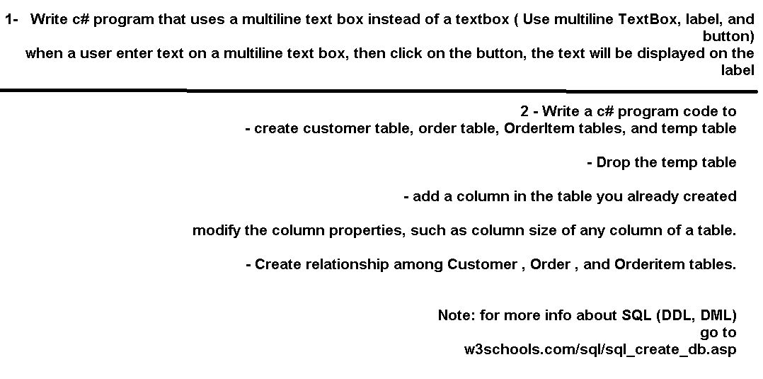 How to display multiline in textbox or label? No. But label is a complete differen control then textBox. In label you CANNOT click or select - its only meant to display something. And if you use Environment.NewLine its the best you can do, to use the label as "multiline label": label1.Text += "1st line of text" + Environment.NewLine; label1.Text += "2nd line of text" + Environment.NewLine; Multiline Label in C# | Delft Stack Apr 11, 2021 · The following code example shows us how to create a multiline label with the Panel method in C#. We created a multiline label in the above code by placing the label inside a panel and handling the ClientSizeChanged event inside the panel in C#. We first specified the Label.AutoSize property to true and specified the label’s maximum size ... c# - How to display multi line in Label? - Stack Overflow Mar 13, 2013 · The difference is that a Literal does not render any HTML markup, whereas a Label will be wrapped in a element. The Literal just inserts the exact text you have, letting your existing HTML and CSS do the styling.