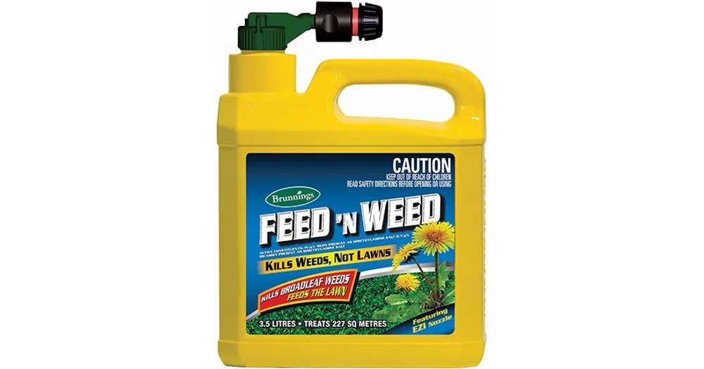 Kill Weeds In Your Lawn & Fertilise It - Weed 'n' Feed | Yates The granular application is easily applied by hand and sprinkled across the lawn. The liquid formula attaches to a hose, so you can start spraying straight away. Whichever you choose, it means you have to spend less time doing the garden, and more time enjoying it. Yates 2.4L Weed 'n' Feed Hose-On Yates 5kg Weed 'n' Feed Granular Yates 4L Weed 'n' Feed Hose On Lawn Weed Killer Yates Weed 'n' Feed has dual-action technology to both control weeds and give the lawn a feed. It selectively kills broadleaf weeds such as bindii, clover, dandelion and thistles; with added fertiliser that contains the nutrients, nitrogen and iron to feed the lawn and promote lush green growth. Details Dimensions Product Package Specifications Yates Weed and Feed Hose On Review - Weeds Be Gone! The instructions on the bottle are very clear and I followed them precisely. A summarized version of the Yates weed and feed hose on instructions are: Shake well Lift plastic cover on applicator and plug-in hose Turn on tap (medium to high pressure) Walk at a steady pace and sweep the spray over the lawn overlapping sprayed areas slightly How to Use Yates Weed and Feed (Granular & Spray) How to use Yates Weed and Feed granular The granular form of Yates Weed and Feed is easy to apply. Broadcast the product over your lawn either by hand or by using a broadcast fertiliser spreader. 1 kg should cover around 15 square metres. You'll want to avoid watering your lawn for 2 days and then repeat the application after 6 weeks.