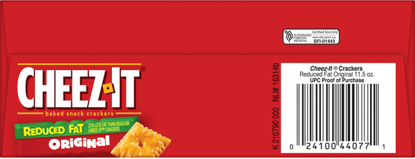 Cheez-It® Reduced Fat Snack Crackers - SmartLabel™ Cheez-It® Reduced Fat Snack Crackers 00024100440771 Nutrition Ingredients Allergens Features & Benefits Company, Brand & Sustainability 140 Calories 1.5 g Sat Fat 250 mg Sodium 0 g Sugar Nutrition Facts Servings Per Container About 11 Serving Size 27 Crackers (30 g)