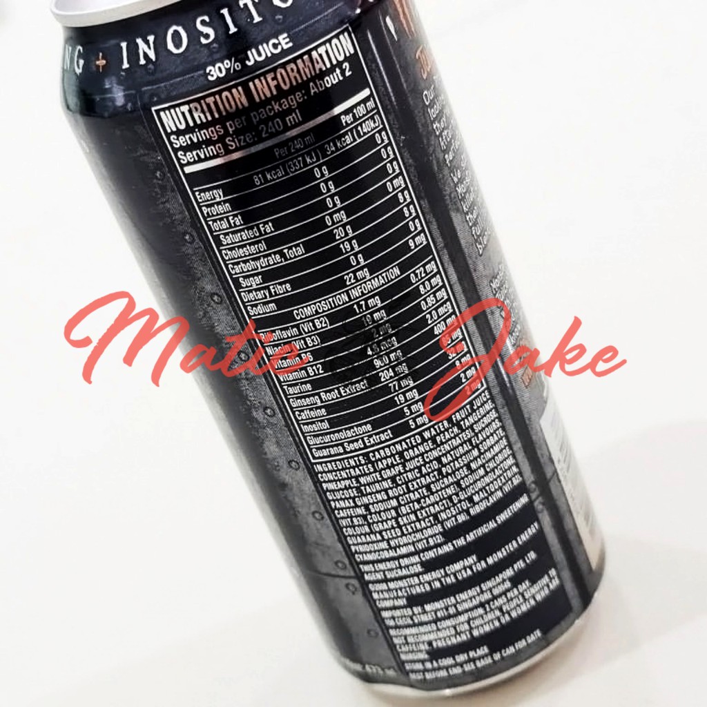 Monster Energy Nutrition Facts (At Close Range) Monster Energy Nutrition Facts (At Close Range) Monster Energy Drink Each 16 fl. oz. can of Monster Energy Drink contains 160 mg caffeine, 210 calories, 54 grams of sugar, and a variety of other energy-boosting ingredients. Monster is also packed with vitamins and nutrients, all of which are essential for the body to function better.