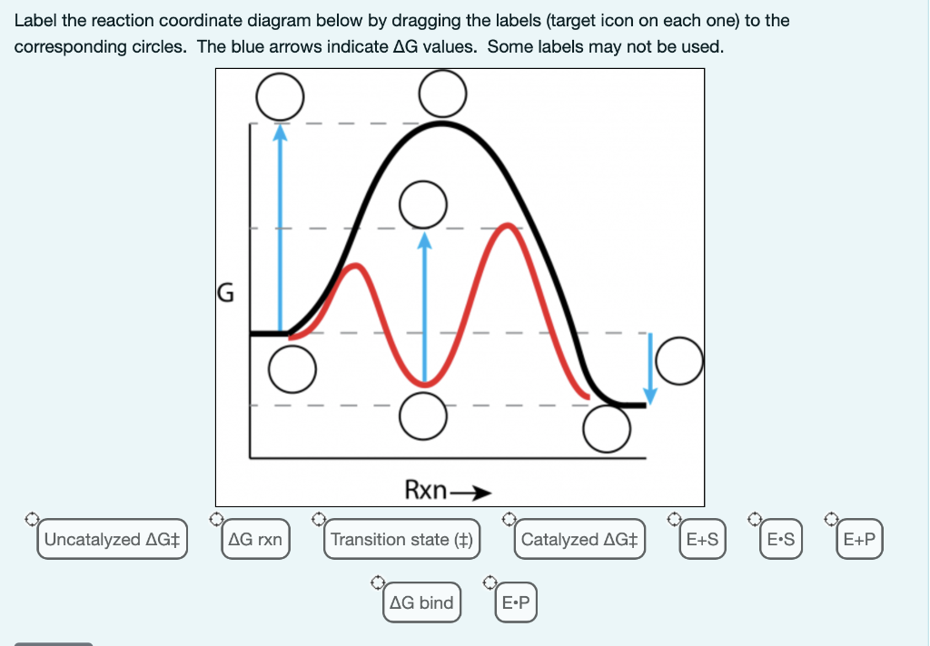 5.3. Reaction coordinate diagrams | Organic Chemistry 1: An ... 5.3. Reaction coordinate diagrams. You may recall from general chemistry that it is often convenient to describe chemical reactions with energy diagrams. In an energy diagram, the vertical axis represents the overall energy of the reactants, while the horizontal axis is the ‘ reaction coordinate ’, tracing from left to right the progress of ... Solved Label the following reaction coordinate diagram ... Label the following reaction coordinate diagram. Energy Reactant (s) Transition State Product (s) Activation Energy (forward) Transition State Activation Energy (forward) Energy Enthalpy of Enthalpy of Reaction Product (s) Reaction AHrxn Reactant (s) Reaction Coordinate Reaction Coordinate Reset Zoom This problem has been solved! Reaction Coordinates in Potential Energy Diagrams Jan 23, 2023 · The reaction coordinate is the dihedral angle between groups on the two atoms, which can be easily observed in a Newman projection. Potential energy surfaces for bond rotation are commonly used for conformational analysis of molecules like ethane and butane. More complicated systems