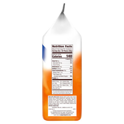 Pepperidge Farm® Goldfish Made with Whole Grain 100 Calorie Snack... MADE WITH SMILES AND WHOLE WHEAT FLOUR, ENRICHED WHEAT FLOUR (FLOUR, NIACIN, REDUCED IRON, THIAMINE MONONITRATE, RIBOFLAVIN, FOLIC ACID), CHEDDAR CHEESE ( [CULTURED MILK, SALT, ENZYMES], ANNATTO), VEGETABLE OILS (CANOLA, SUNFLOWER AND/OR SOYBEAN), SALT, CONTAINS 2% OR LESS OF: YEAST, AUTOLYZED YEAST EXTRACT, PAPRIKA, SPICES, CELERY, BAKING SODA, …