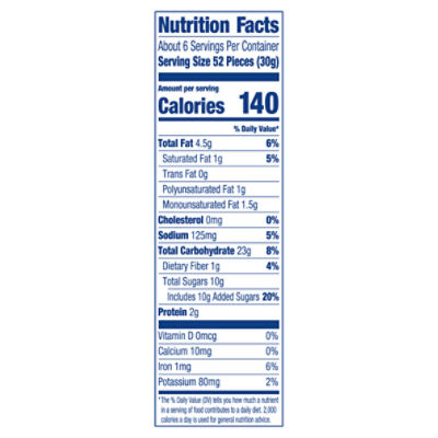 Goldfish nutrition facts label. Goldfish Nutrition Facts - Eat This Much For a Serving Size of 1 pouch ( 94 g) How many calories are in Goldfish? Amount of calories in Goldfish: Calories 130. Calories from Fat 40.5 ( 31.2 %) % Daily Value *. How much fat is in Goldfish? Amount of fat in Goldfish: Total Fat 4.5g. Baked with Whole Grain Cheddar Crackers - Pepperidge Farm We bake our Goldfish® crackers with smiles and ingredients that you can feel good about. Goldfish®. Goldfish® Baked with Whole Grain Cheddar. Goldfish® Baked with Whole Grain Colors. 6.6 oz. 30 oz. Nutrition facts & Ingredients. Nutrition Facts. About 6 Servings Per Container. Pepperidge Farm® Goldfish Baked Snack Crackers, Cheddar Cheese MADE WITH SMILES AND ENRICHED WHEAT FLOUR (FLOUR, NIACIN, REDUCED IRON, THIAMINE MONONITRATE, RIBOFLAVIN, FOLIC ACID), CHEDDAR CHEESE ( [CULTURED MILK, SALT, ENZYMES], ANNATTO), VEGETABLE OILS (CANOLA, SUNFLOWER AND/OR SOYBEAN), SALT, CONTAINS 2% OR LESS OF: YEAST, SUGAR, AUTOLYZED YEAST EXTRACT, PAPRIKA, SPICES, CELERY, ONION POWDER, MONOCALCIUM … Whole Grain Goldfish Nutrition Facts - Eat This Much Amount of Iron in Whole Grain Goldfish: Iron 0.5mg. 6%. Fatty acids. Amino acids. * The Percent Daily Values are based on a 2,000 calorie diet, so your values may change depending on your calorie needs. Report a problem with this food. Find on Amazon.
