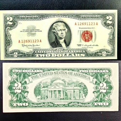 How Much Is 1963 2 Dollar Bill Worth? (ANSWERED) - Jewels Advisor The 1963 2 dollar bills are worth around $9 in excellent conditions. Meanwhile, you should expect about $20 for an uncirculated note with an MS 63 grading. Of course, the bills with an MS 65 grading can help you earn about $40 without issues depending on the condition. Super Rare 2 Dollar Bill from 1963 with Red Seal And Red numbers Super Rare 2 Dollar Bill from 1963 with Red Seal And Red numbers $799.99 + $5.99 shipping Super Rare 2 Dollar Bill from 1963 with Red Seal And Red numbers $550.00 + $10.20 shipping 1963 Circulated Two Dollar ($2) Bill Red Seal Note A Series $499.00 Free shipping Hover to zoom Have one to sell? Sell now Shop with confidence eBay Money Back Guarantee