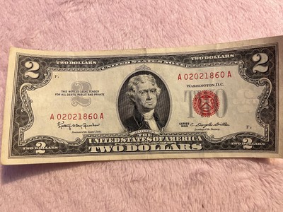 How much is a 1963 red ink $2 bill worth? - Sage-Advices Both the 1963 series and 1963A series $2 bills are worth around $9 each in very fine condition. In uncirculated condition the price is around $20 for bills with an MS 63 grade. How much is a two-dollar bill with red ink? Since two-dollar bills were first printed in 1862, they never found favor with the American public. 1963 Red Seal Two Dollar Bills - Values and Pricing You can buy a circulated 1963 red seal two dollar bill any day of the week for around $3. A star note from 1963 will cost you closer to $5 if it is in average condition. It is still possible to buy 100 note packs of 1963 red seal two dollar bills. A pack will cost around $800. 1963 $2 star packs are less available and should sell for around $1,500. What Is The Value Of A Red Seal Two Dollar Bill, 1963? what is the value of a red seal two dollar bill, 1963? bills answer #2 jade 12 years ago I think if the bill is circulated its value is face value and if uncirculated it may get up to $8. I've heard there's a 1963 $2 bill worth $5000. Its serial number is A06351047A. Is it the one you have? 😄 1963 $5 Bill Value Guides (Red ink & Green ink Series) 1963 $5 bills with a red seal in a gem crisp uncirculated condition (an original pack of 100 pieces) are worth $3,818 How much is the 1963 $5 bill worth? You can get about $20 to $25 for one banknote printed in 1963, but only when it is in uncirculated condition. The used bills' price is about $10. Are there any rare 1963 $5 bills?